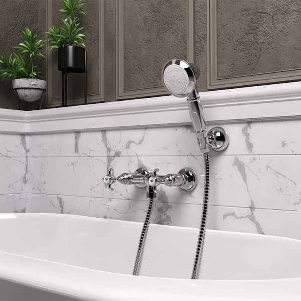 Смешение стилей в яркой форме коллекции ORNELLAIA раскроет пространство по-новому. Загнутые лепестки вентилей придают этому элементу управления оригинальный визуальный смысл. Двухвентильный смеситель для душа станет достойным дополнением интерьера. В комплект входит лейка для душа, шланг и держатель для лейки. Контраст винтажной формы смесителя и необычных вентилей делает функциональность небанальной и привлекательной. Смеситель сможет стать украшением дизайна в стиле нео-классицизм, модерн или расставить акценты в стиле фьюжн.Рекомендации по интерьерным решениям со смесителями ORNELLAIAМожет ли одна только форма смесителя удачно намекнуть о смешении нескольких стилей, даже при использовании лаконичной отделки других поверхностей ванной комнаты? Коллекция ORNELLAIA от бренда PAINI своими изгибами и эклектикой форм подтверждает это. А качество, доказанное 60-летней историей этой итальянской фабрики, позволит вам сосредоточиться на дизайне.Оригинальный, стильный смеситель для ванной комнаты — это простой и быстрый способ сделать интерьер визуально более статусным. Рядом с дизайнерской моделью даже неброская сантехника и традиционная плитка заиграют, а обстановка в целом будет казаться значительно дороже.В интерьере в стиле модерн хочется создать ощущение свободного пространства, но при этом внести затейливые изгибы, асимметрию. Подходящий прием для этого - использовать смеситель, который привлечет внимание своей формой.Когда мы говорим о вентилях в смесителях, то сразу вспоминаем о классической стилистике ванной, но необычная форма вентилей коллекции ORNELLAIA с загнутыми внутрь лепестками придаст новый визуальный смысл этому элементу управления. Такая сантехника сможет стать украшением дизайна в стиле нео-классицизм, модерн или расставить акценты в стиле фьюжн.
