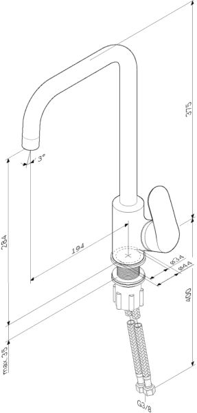 • Высота смесителя: