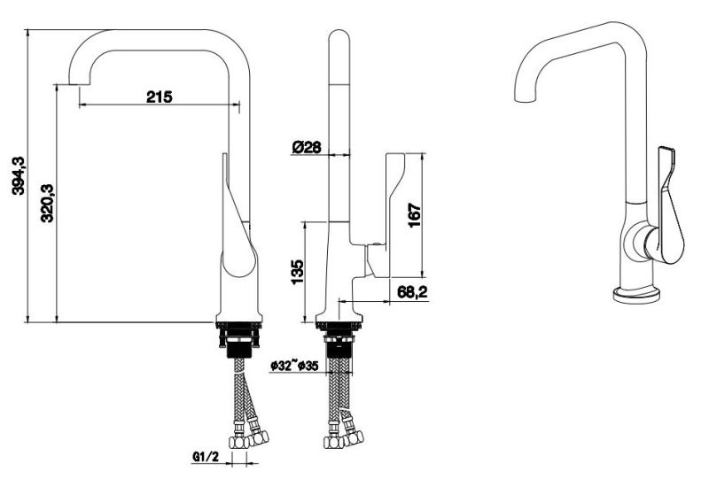 • оснащен высоким изливом, удобен для мытья крупных предметов