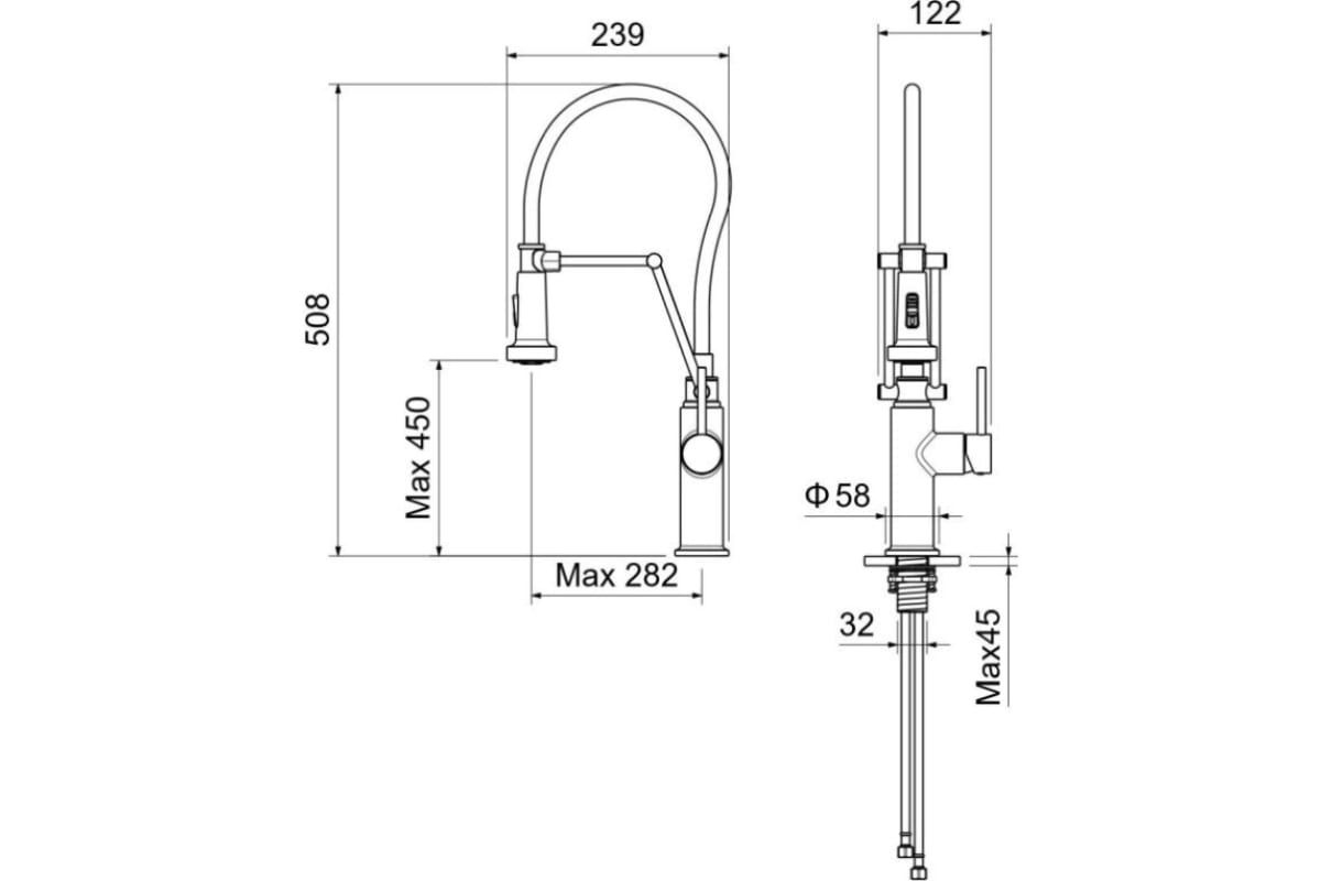 • Высота смесителя: