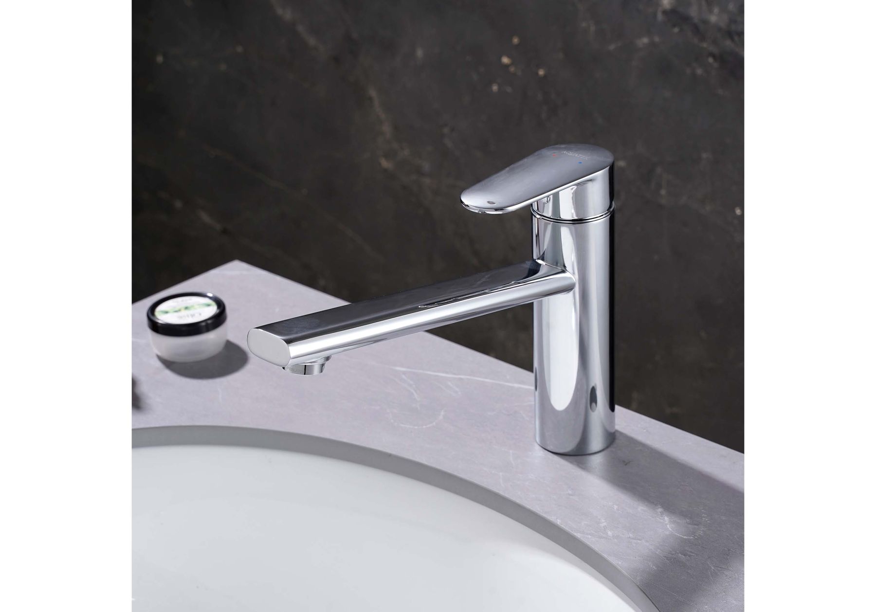 • оснащен длинным изливом, подходит для большинства кухонных моек