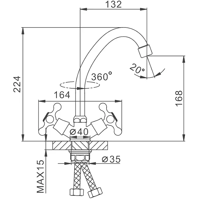 - Высота смесителя:22.4