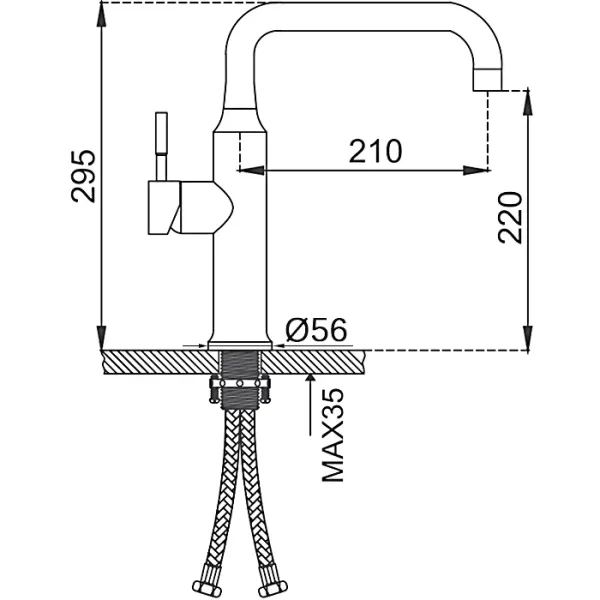 • Высота смесителя: