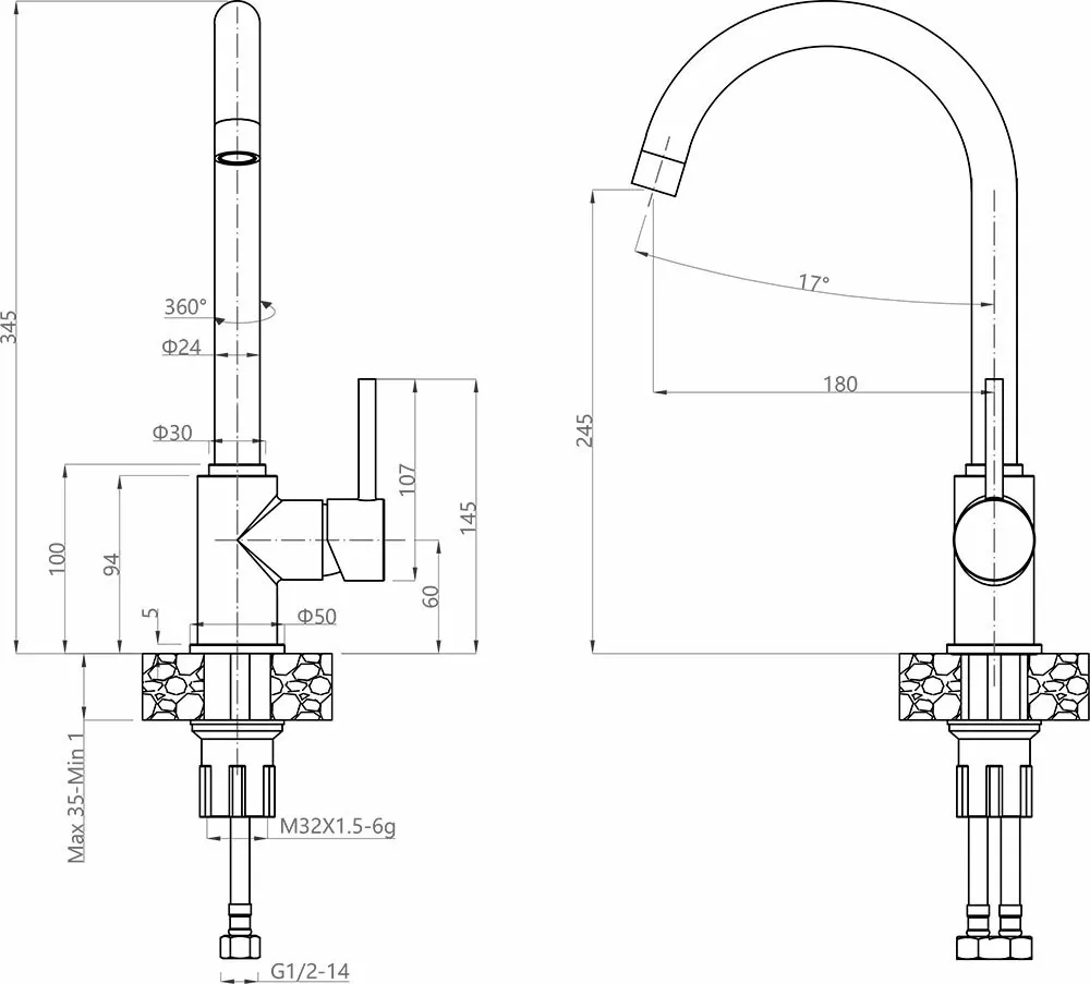 Смеситель для кухни GranFest 3650 серый Подробнее