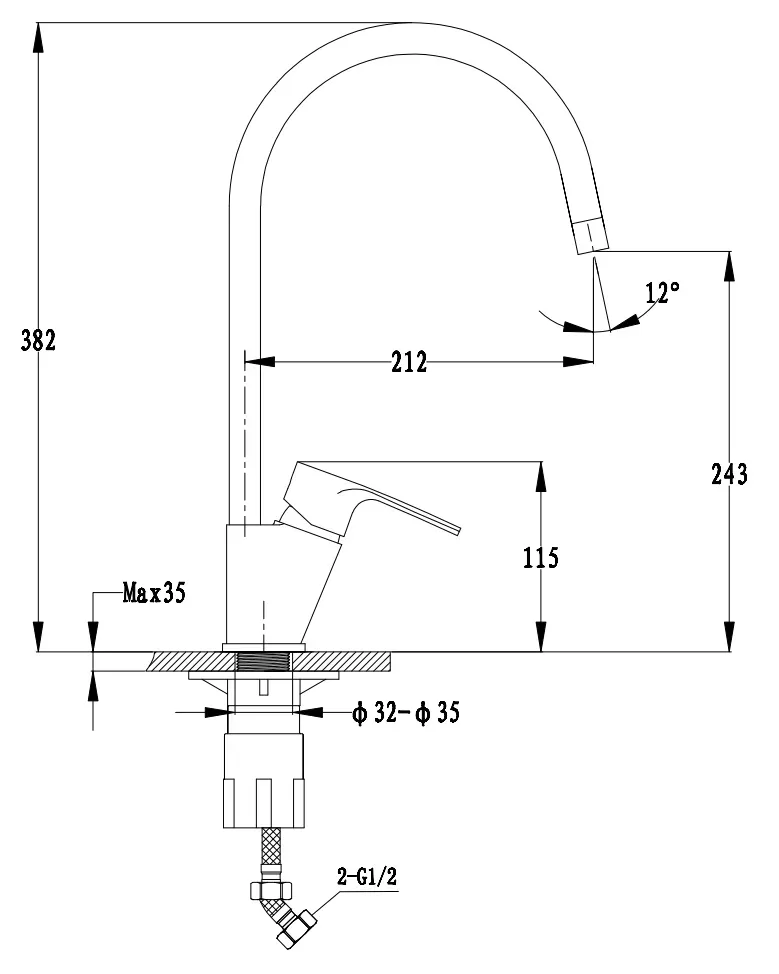 • Высота смесителя: