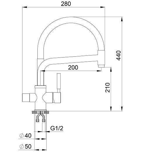 Смеситель для кухни. Цвет-алюминиум. В комплект поставки входит: смеситель, гибкая подводка, комплект креплений, переходник для подключения фильтра с питьевой водой