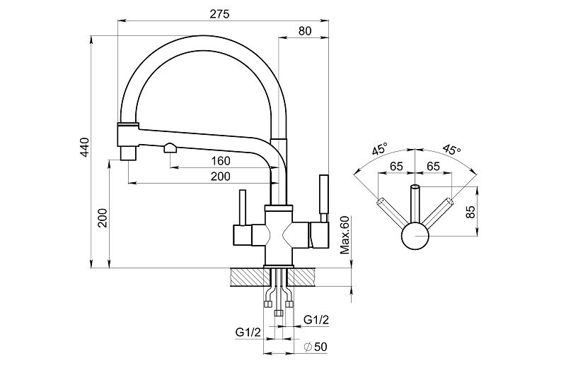 • Высота смесителя: