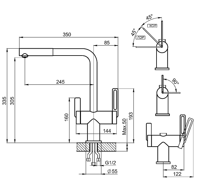 Смеситель для кухни Granula 8170, АРКТИК (БЕЛЫЙ) белый