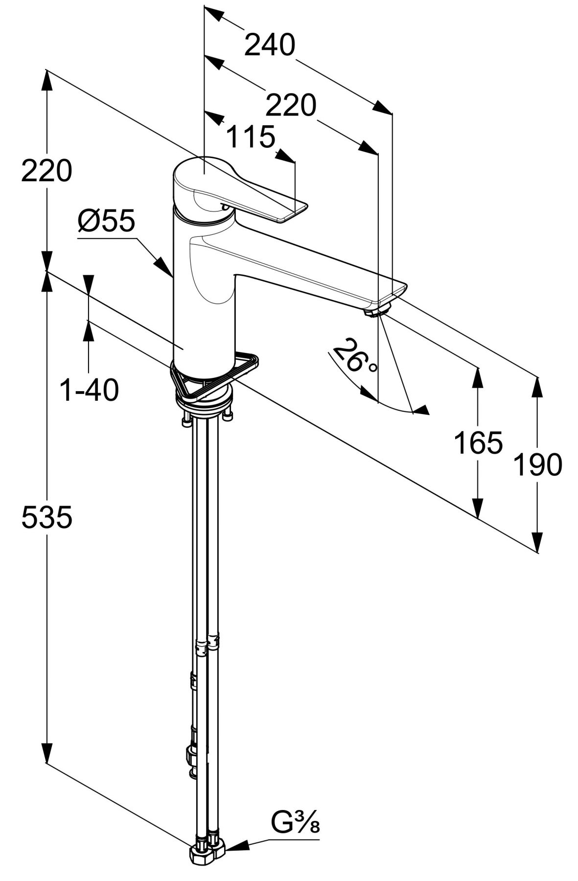 • Высота смесителя: