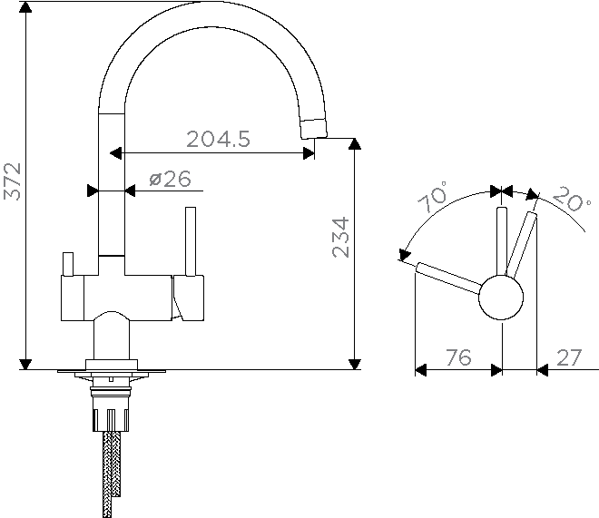 • Высота смесителя: