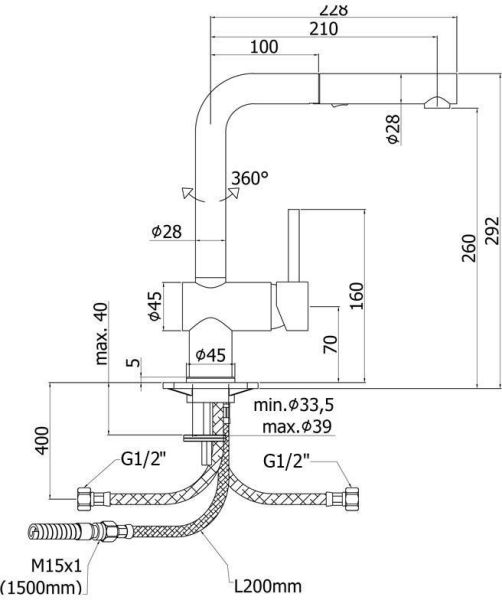 • Высота смесителя: