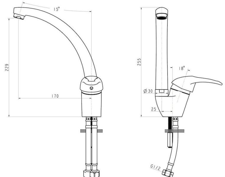 • Высота смесителя: