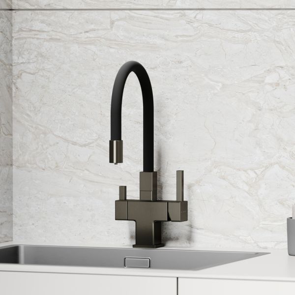 Смеситель для кухни SANCOS Arno с гибким изливом и возможностью подключения фильтра для воды, цвет вороненая сталь, арт. SC4005GGФункция "Холодный старт" - при включении смесителя активируется холодной поток, для экономии горячей водыАэратор, гибкая подводка, ключ и крепления для монтажа