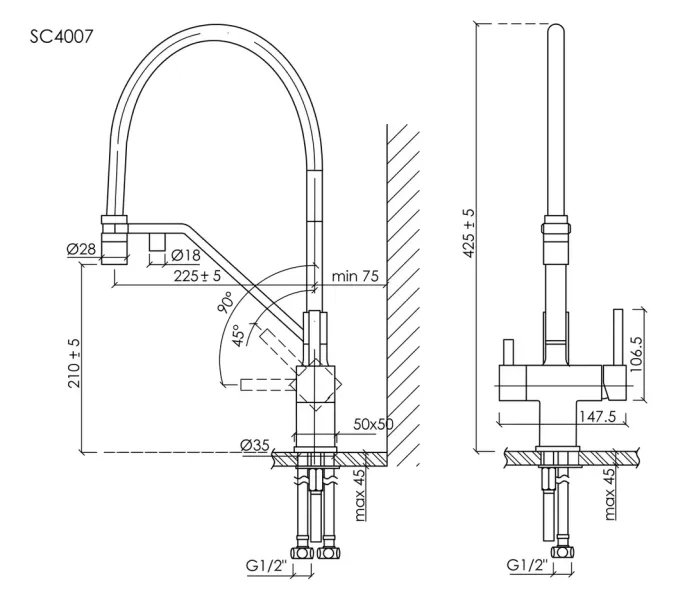 - Высота смесителя:42.5