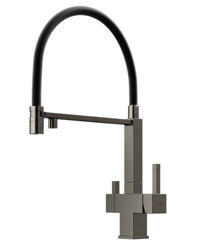 Смеситель для кухни SANCOS Moro с гибким изливом и возможностью подключения фильтра для воды, цвет вороненая сталь, арт. SC4006GGФункция "Холодный старт" - при включении смесителя активируется холодной поток, для экономии горячей водыАэратор, гибкая подводка, ключ и крепления для монтажа