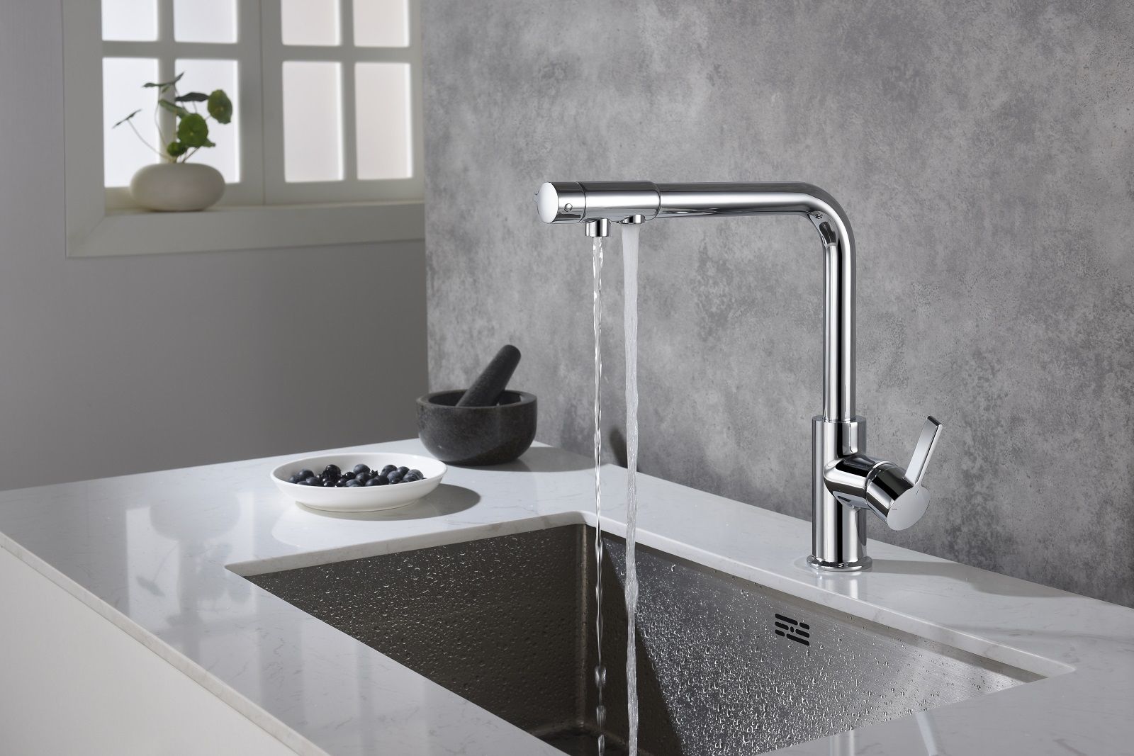 - Смеситель для кухни, с подключением фильтра для питьевой воды