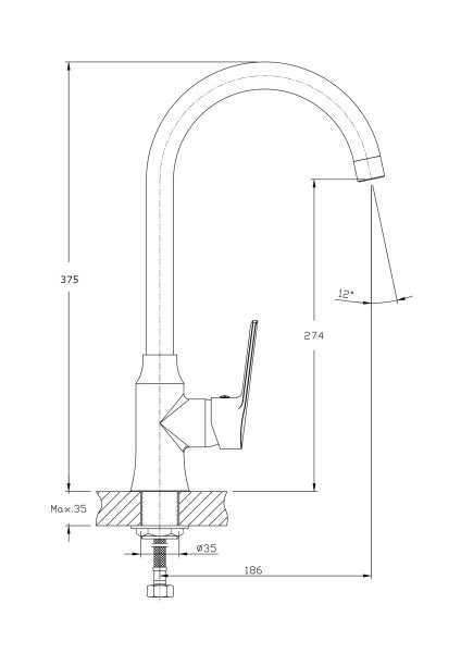 - Высота смесителя:37.5