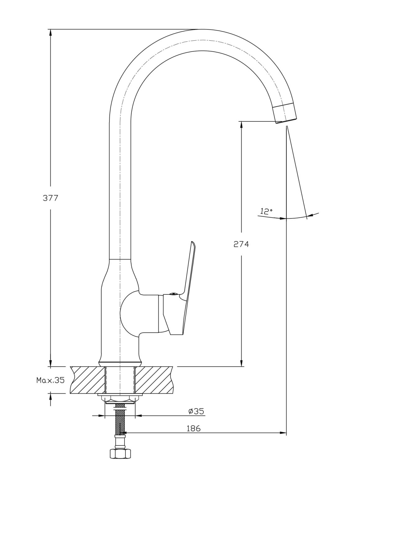 - Высота смесителя:37.7