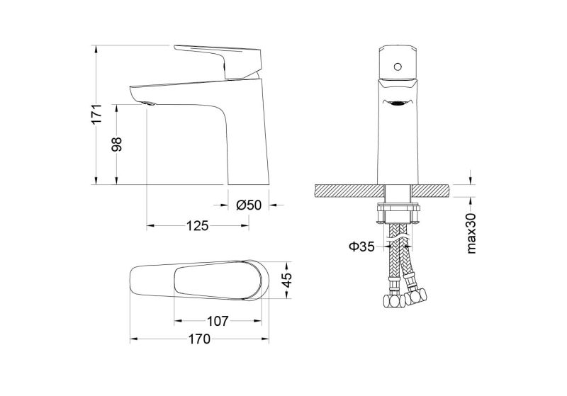 • Цельный корпус смесителя снижает вероятность протечек