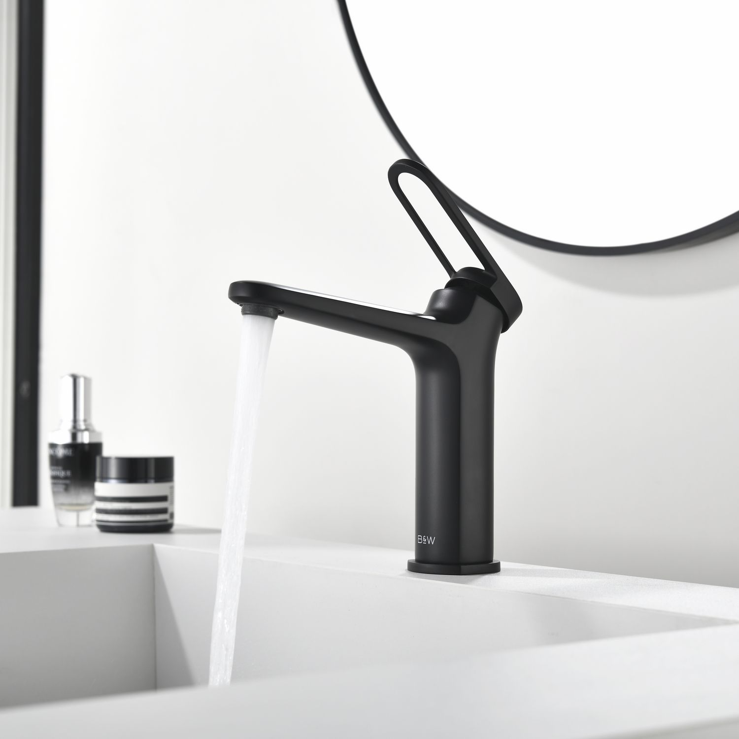 Смеситель для раковины датского производителя Black&White черного матового цвета. Материал корпуса – сантехническая латунь, безопасный для здоровья и ресурсный сплав, с порошковой окраской. Управление потоками воды и настройка температуры осуществляется с помощью керамического картриджа.Важным функциональным и эстетическим решением стоит отметить возвышение излива на 10 градусов  и ручки управления на 25 градусов относительно плоскости– это создает стремительные линии, а также минимизирует количество подтеков на корпусе когда Вы моете руки .