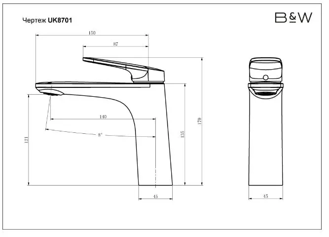 Смеситель для раковины Black&White Universe UK8701C хром