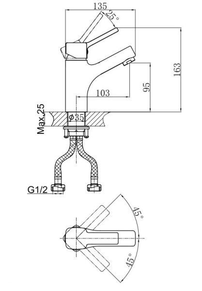 • Высота смесителя: