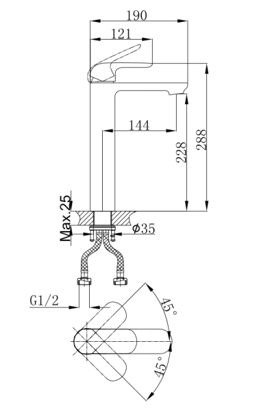 - Высота смесителя:29