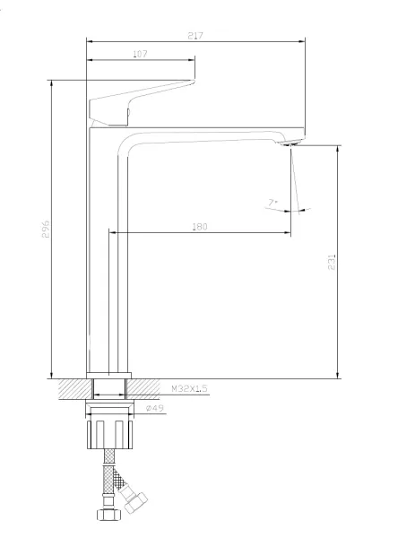 • Высота смесителя: