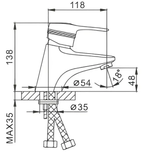 Длина излива: 118 мм