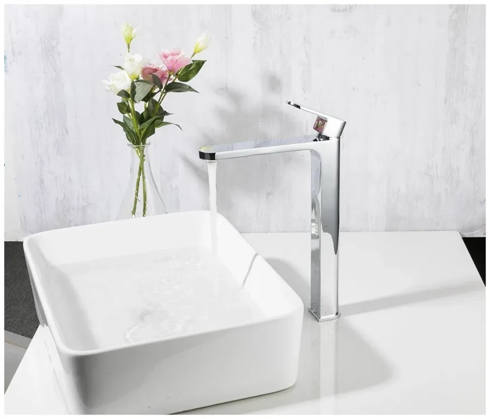 Смеситель для умывальника Gappo G1083-2 - однорычажный смеситель с высоким изливом для отдельностоящего умывальника. Цвет - хром.
