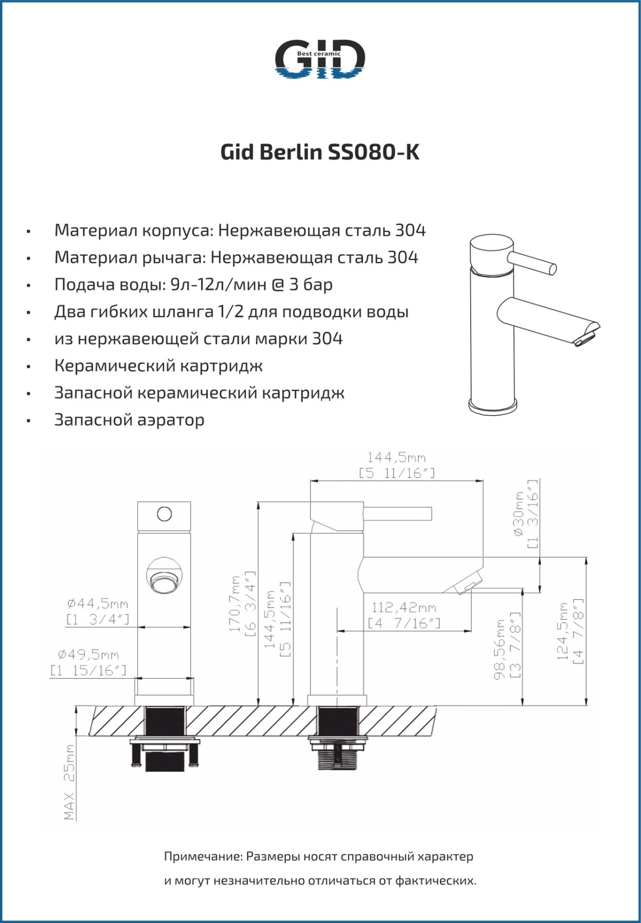 Смеситель для раковины Gid Berlin SS080-CH-K SS080CHK хром