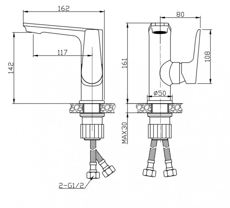 Тип подводки: гибкая 1/2"