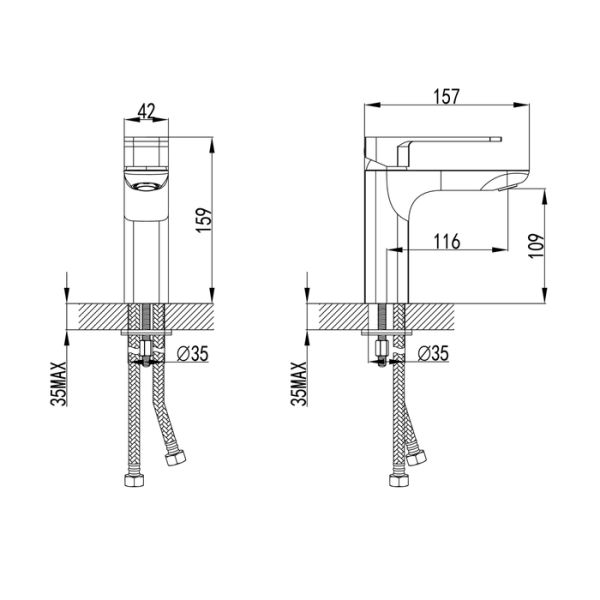 • Высота смесителя: