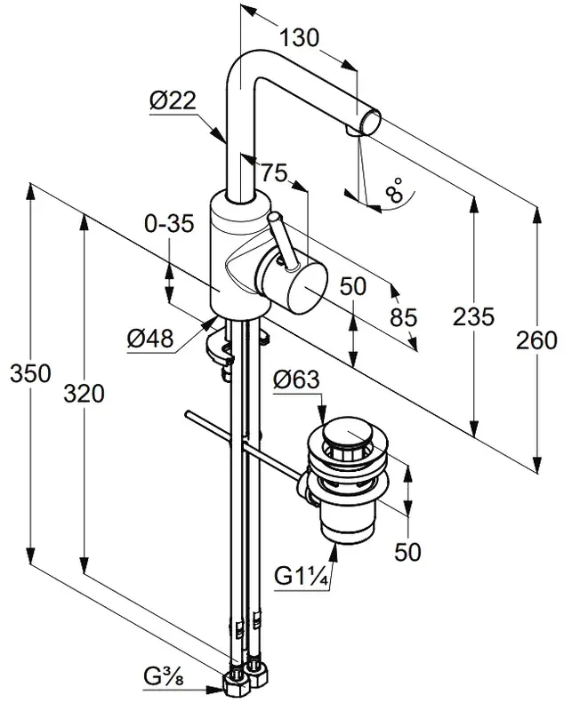 • Поворотный излив позволяет повернуть смеситель для удобства использования раковины