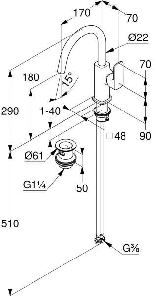 • Поворотный излив позволяет повернуть смеситель для удобства использования раковины
