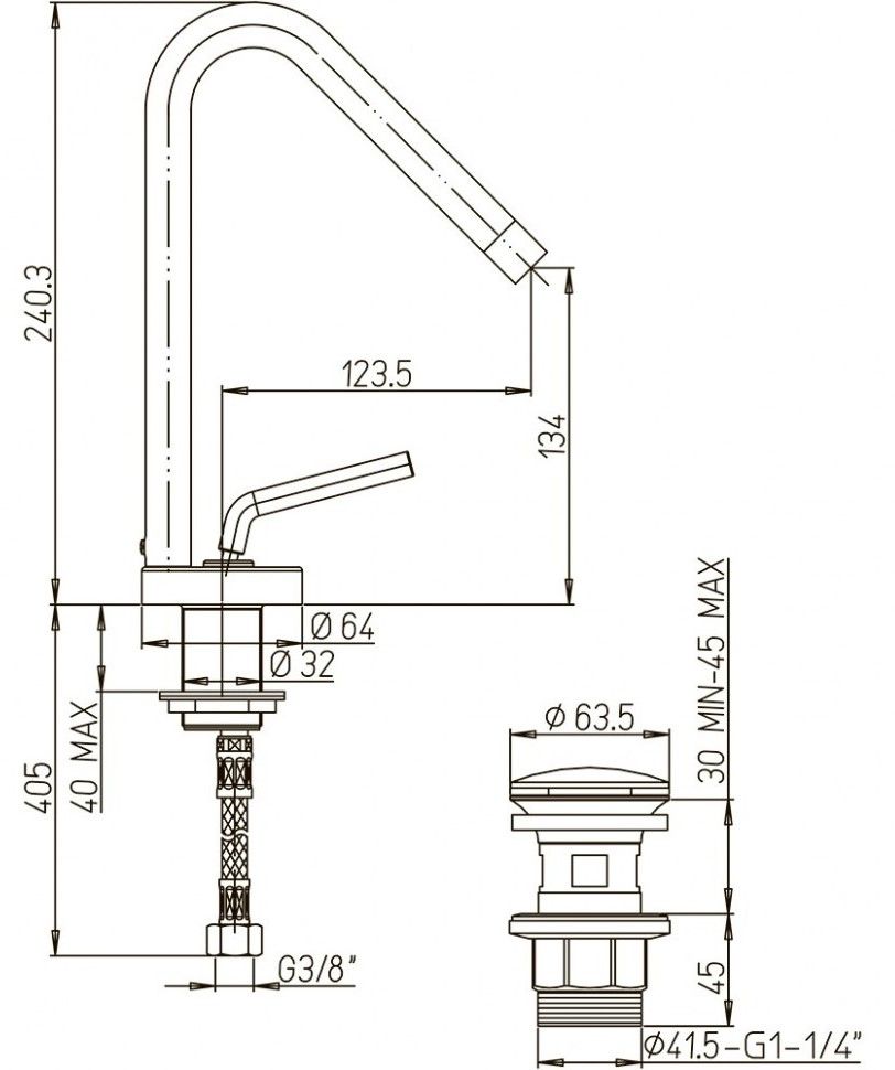 - Высота смесителя:24