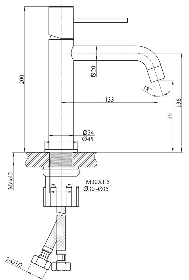 - Высота смесителя:20