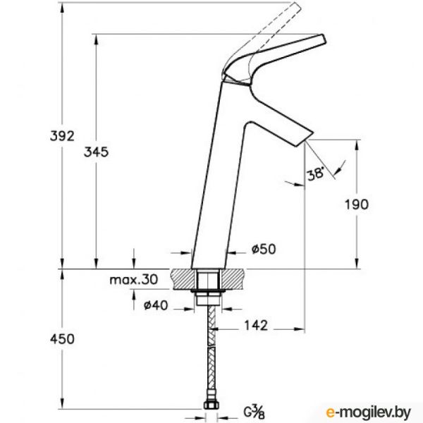 • Высота смесителя: