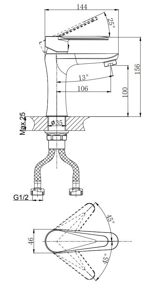 • Высота смесителя: