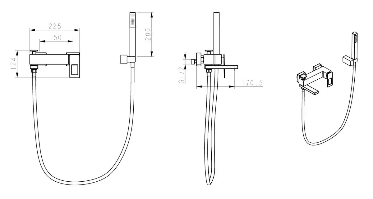 Смеситель Boheme Q для ванны, с душевым гарнитуром, черный, хром, 143-BCR.2