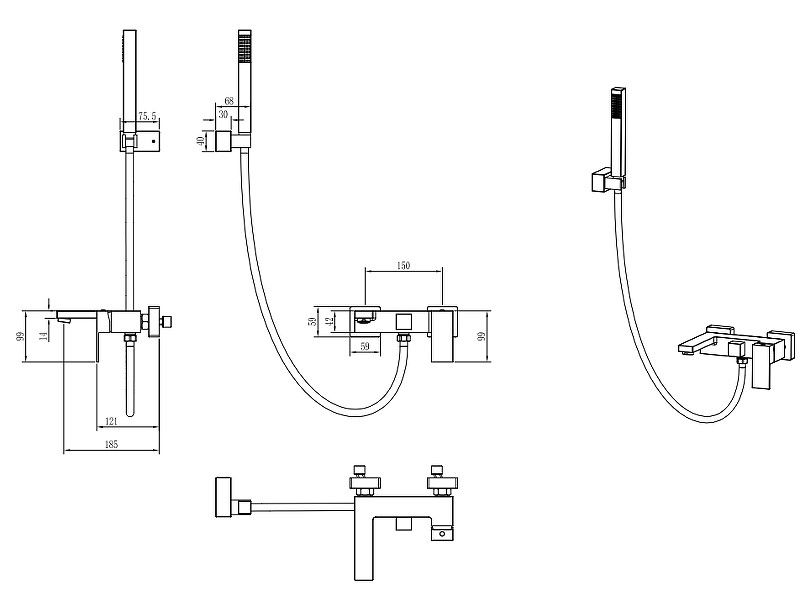 Смеситель для ванны Boheme Qubic 473-NB с душевым гарнитуром.Характеристики:Цвет: никель брашированный.