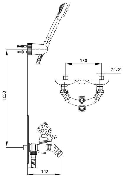 Смеситель для ванны E.C.A. Ottoman 102202001EX антик лак