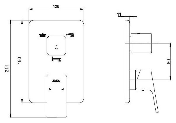 Смеситель для ванны E.C.A. Tiera 102167305EX-K хром