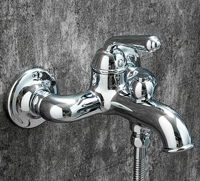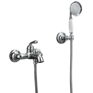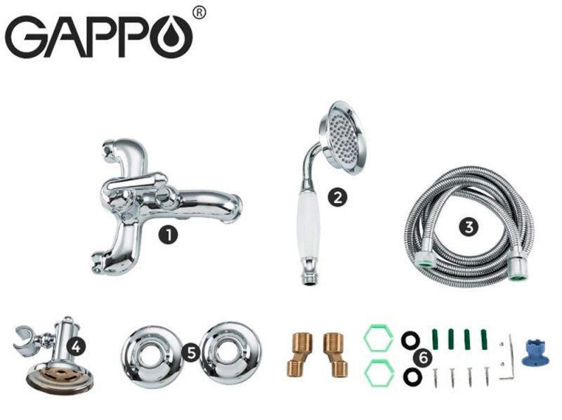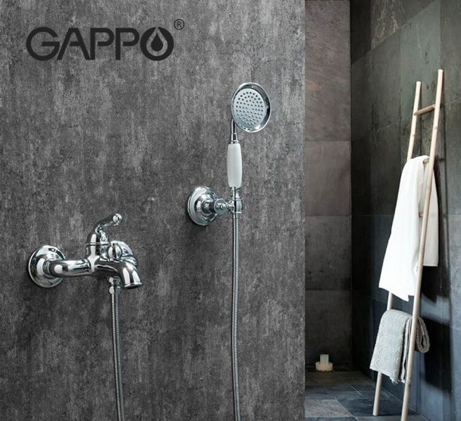 Смеситель для ванны Gappo G3288 в ретро-стиле, с коротким литым изливом и нажимным переключателем на душ. Однорежимная душевая лейка в комплекте. Цвет - хром.