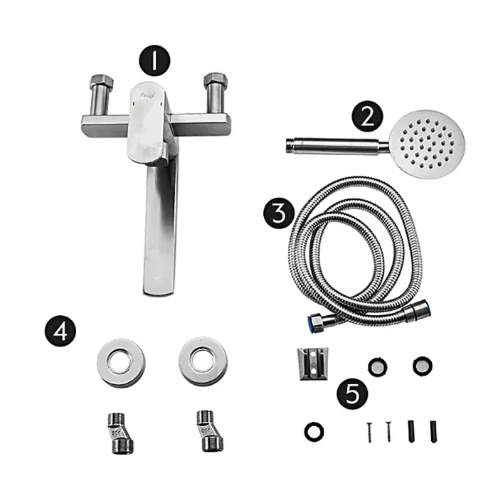 В комплекте:Душевой шланг 150 см, Душевая лейка, Держатель лейки, Комплект отражателей, Комплект эксцентриков
