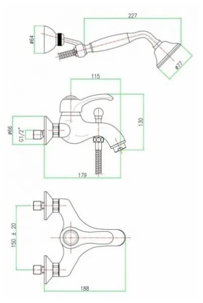 Смеситель для ванны Webert AU850101065 с душевым гарнитуром.