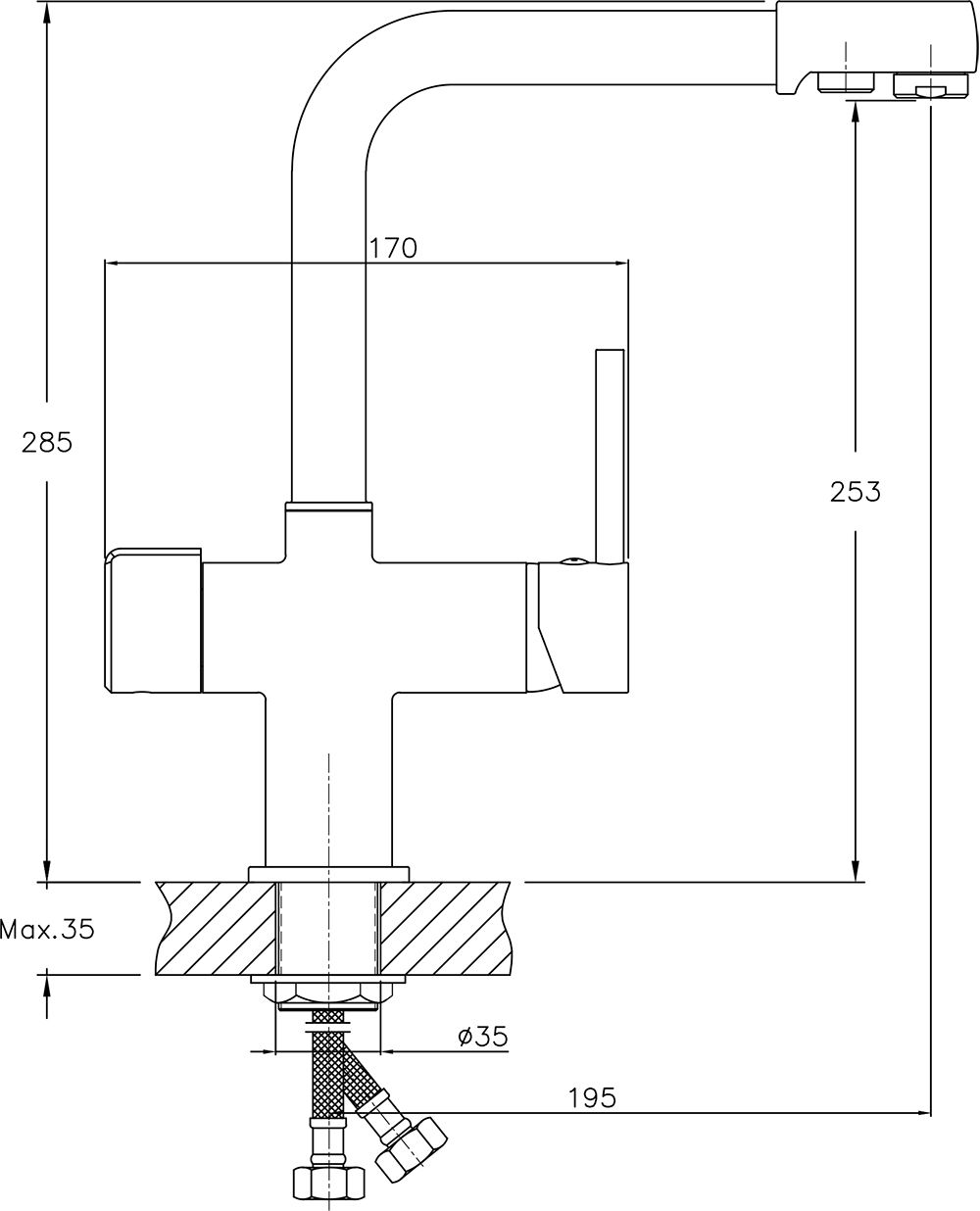 Смеситель для кухонной мойкиЦветовая гамма: Алюминиум, Классик, Антик, Песок, Пирит, Базальт, Арктик, Эспрессо, Графит, Черный, ШварцГибкая подводка (3 шт.); набор для крепления; прокладки уплотнительные (2 шт.); аэраторГарантийный срок от производителя - 5 лет