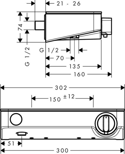 Смеситель Hansgrohe Ecostat Select 13171000 для душа с термостатомХарактеристики продукта:-1 потребитель-предохранительный ограничитель при 40°C-из безопасного стекла-поверхность полочки: хром или белый