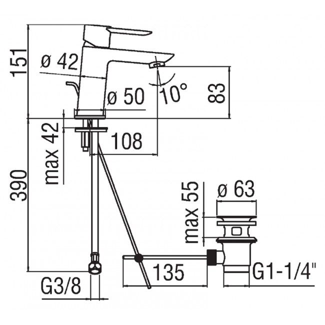 - Высота излива:83