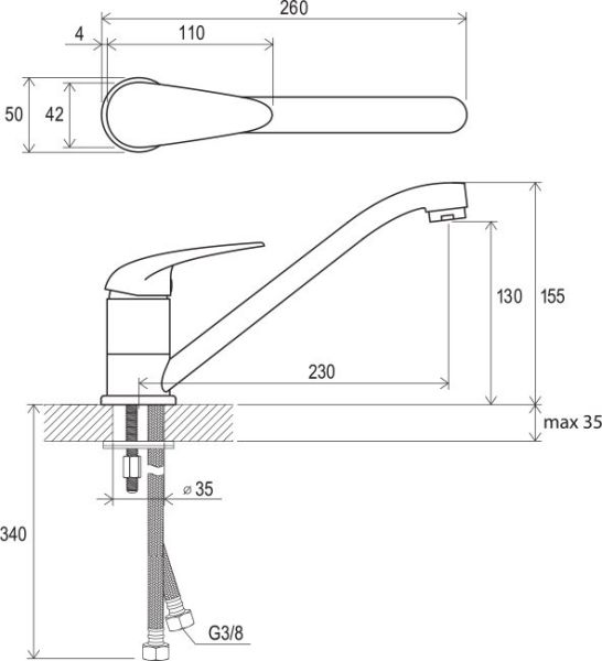• подходит: к кухонной мойке или большому умывальнику